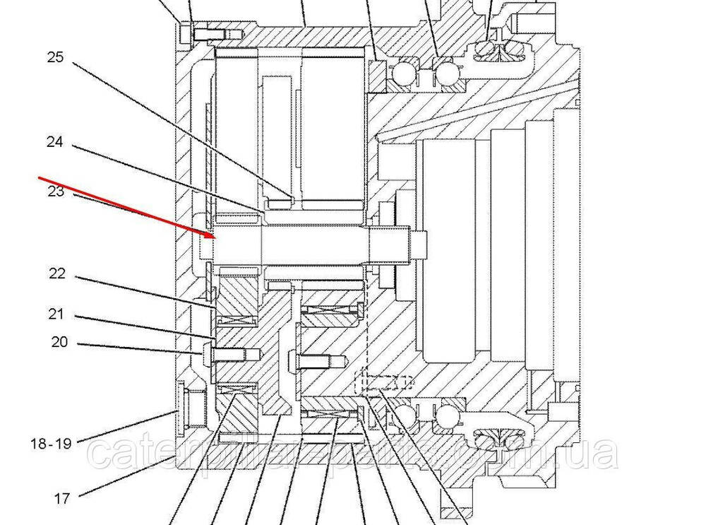 Вал-шестерня в редукторі ходу екскаватора CAT 312