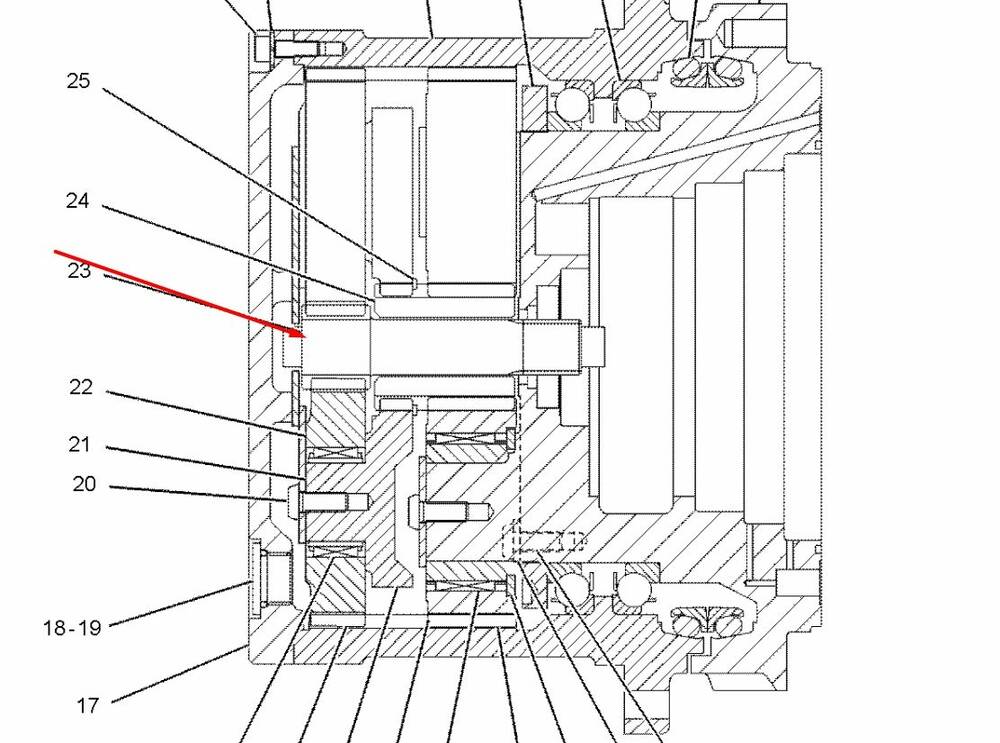Вал-шестерня в редукторі ходу екскаватора CAT 312