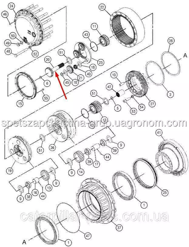 1912674 Вал редуктора Caterpillar. Купити запчастини для спецтехніки можна у Києві безпосередньо з нашого складу. Всі запчастини в мости та КПП ми поставляємо безпосередньо від виробника. Ремонт мостів та трансмісії проводить наш сервісний центр з ремонту спецтехніки та двигунів (Київ, Україна).