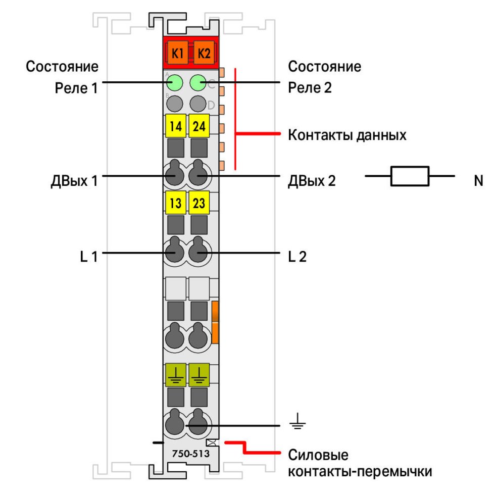 2-канальний релейний вихід; 250 В змін. струму; 2,0 А; безпотенційні; 2 замикає контакт WAGO