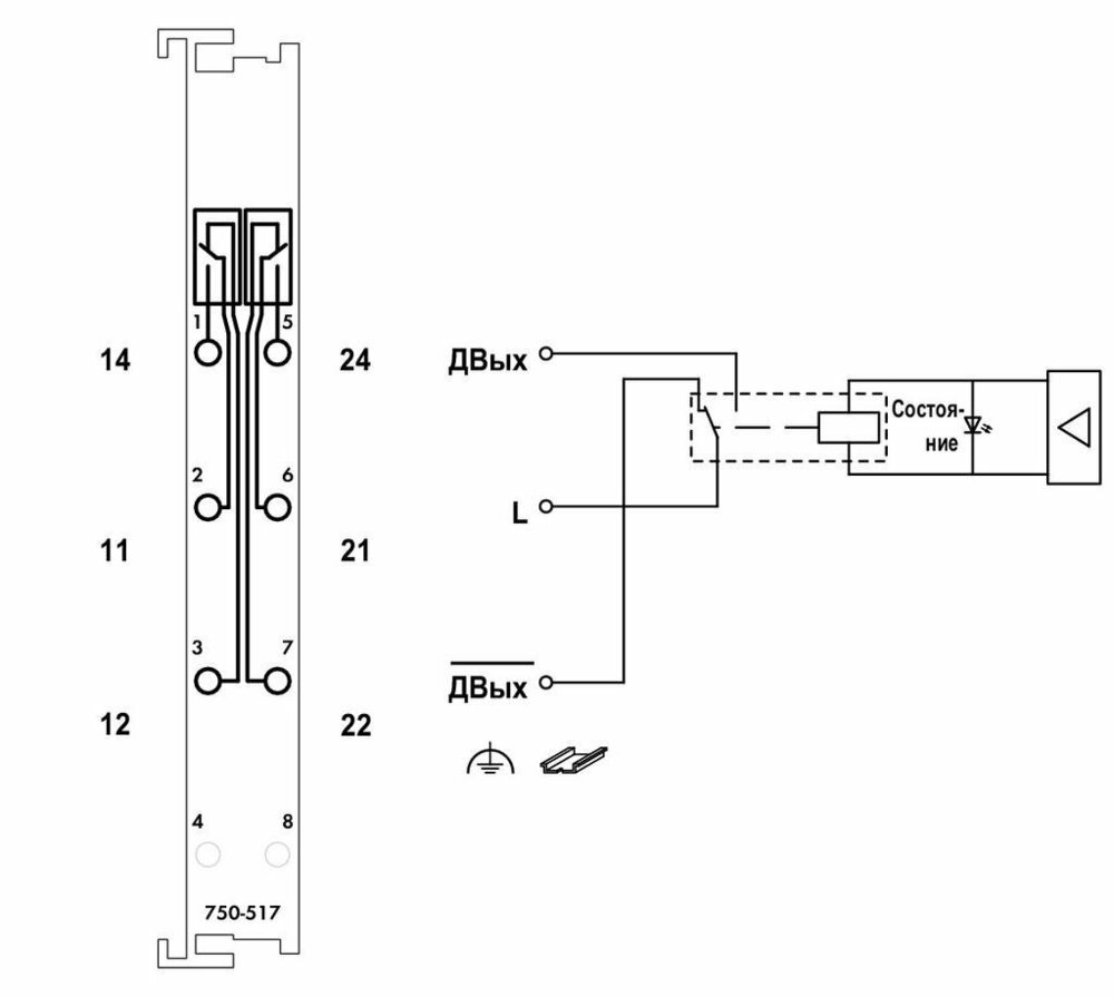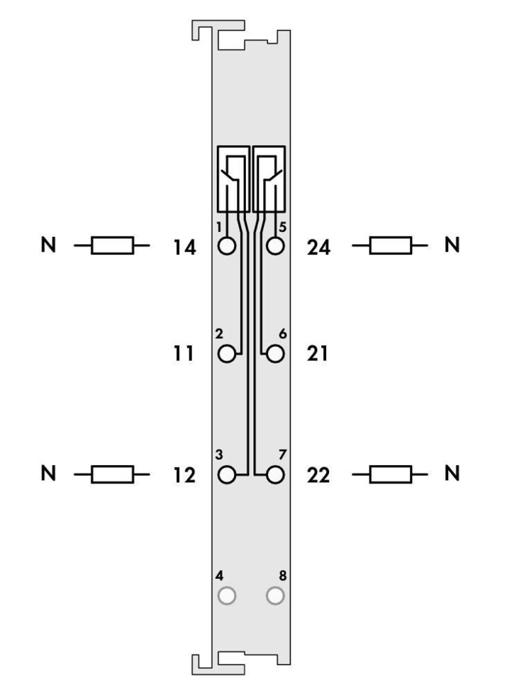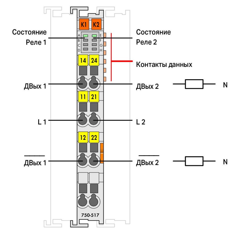 2-канальний релейний вихід Wago; 250 В перемелювався.струму; 1 А; Беспотенциальные; 2 перекидні контакти.