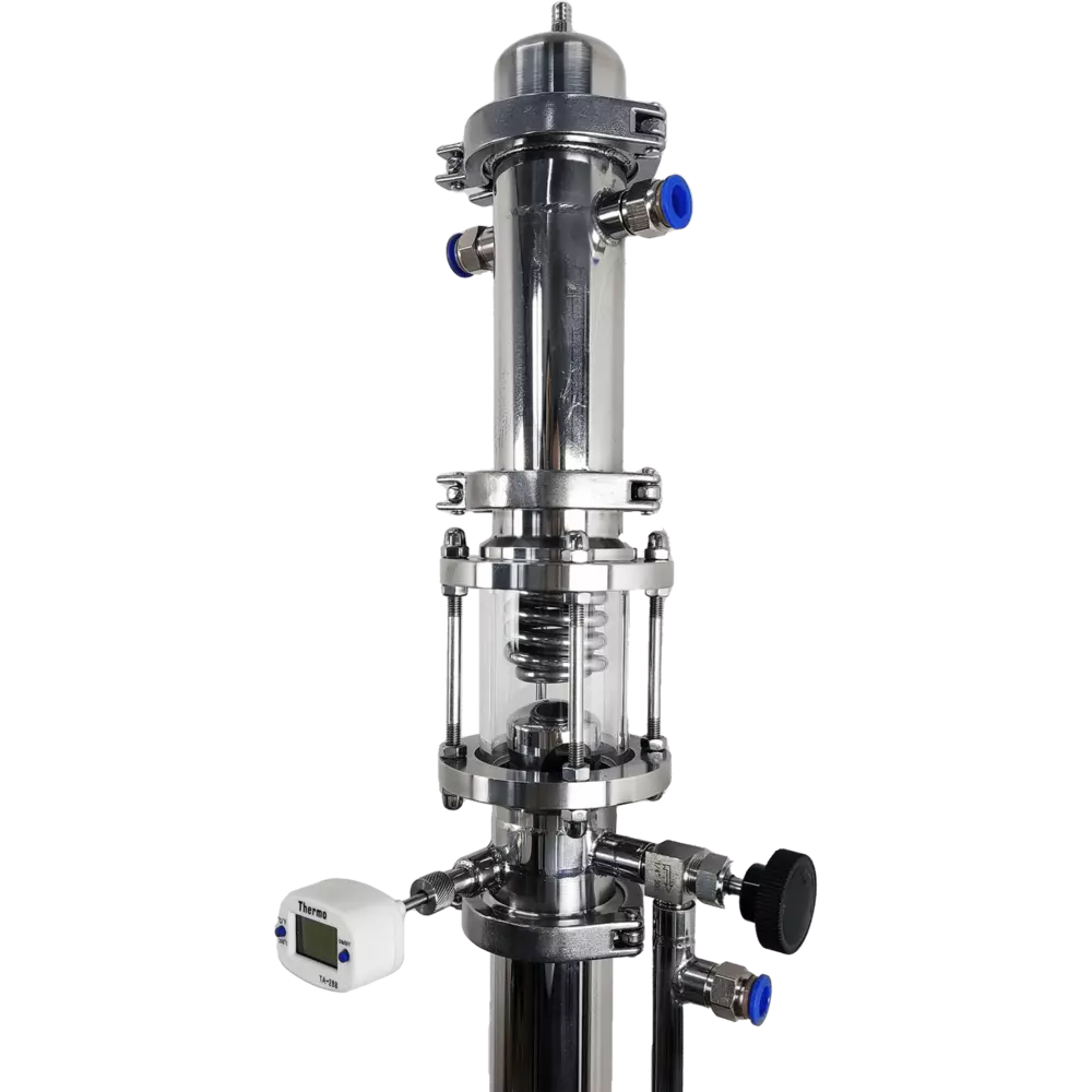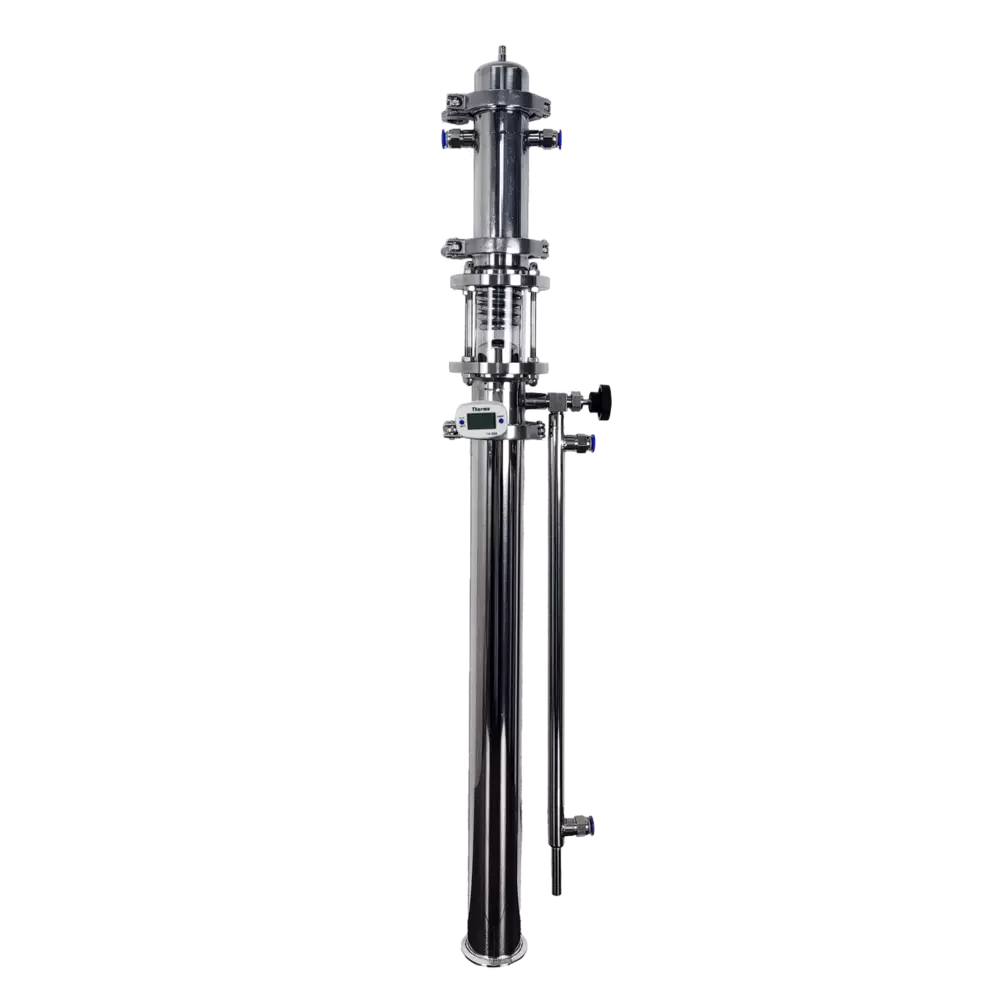 Бражно-ректифікаційна колона Magnum SpiritЗ дефлегматором Дімрота та вузлом відбору Базова комплектація (без кубу):1) 2" Царга 500мм2) 2" Узел отбора МагПро Візуал з термометром3) Голковий кран нержавійка4) Доохолоджувач5) 2" Дефлегматор Дімрота6) 2" "Носик" з трубкою зв'язку і атмосферою7) 2" Хомути з прокладками 4шт8) РПН нержавійка 5шт9) Інструкция с гарантійним талоном10) Сантехкомплект:→ швидкозйоми латунь 3шт→ голковий кран (пластик) 1шт→ шланг поліуретан 4м→ шланг силікон 1м→ фум-стрічка 1шт Характеристики:Висота в зборі (без куба) 850ммДовжина трубки дефлегматора Дімрота: ≈4,5мДіаметр трубки дефлегматора ДІмрота: 6ммМаксимальна потужність конденсації дефлегматора Дімрота: 3,5 кВт*Діаметр труби 51 ммВисота царги 500 ммШтуцера швидкозйоми 1/4" під шланг 10 ммХарчова нержавіюча сталь AISI304*потужність залежить від температури води, що подається, способу підключення, швидкості подачі води та інших факторів Параметри упаковки (Д/В/Ш, вага): 51/13/30см, 5кгСхема підключення води: