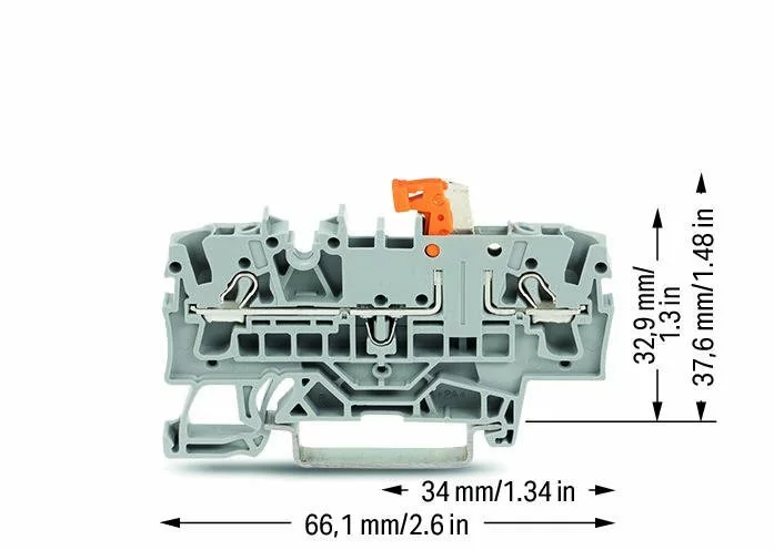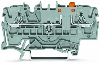2-дротяні клеми з розмикальним Wago 2,5 мм². Тестові клеми; з можливістю тестування; помаранчевий розмикальний; для DIN- рейки 35 x 15 і 35 x 7,5; 2,5 мм²; Push - in CAGE CLAMP®; 2,50 mm²; сірі