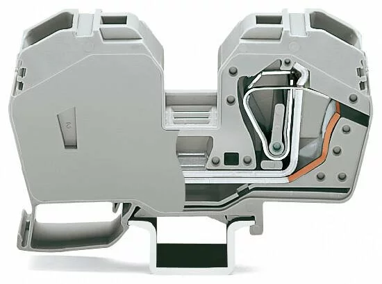 2-дротяні прохідні клеми 35 мм² Wago 285-635, зі вбудованою торцевою пластиною; бічна і центральна маркіровка; тільки на рейці DIN 35 x 15; CAGE CLAMP®; 35,00 mm²; сірі.