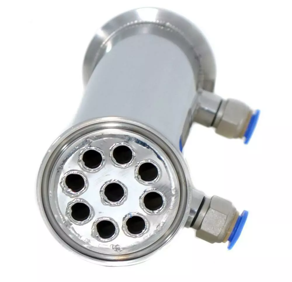 Техн. Характеристики:Діаметр труби 51ммПід кламп 2"Висота дефлегматора 200 мм, 9 трубок на 10мм3 перегородки. Потужність до 2500 Вт (при роботі "на себе")Штуцера для підведення води під швидкоз'єми. Різьба внутрішня 1/4". Під шланг 10ммНержавіюча сталь AISI304 Параметри з упаковкою (Д/Ш/В, вага):27/9/8см., 0,7кг