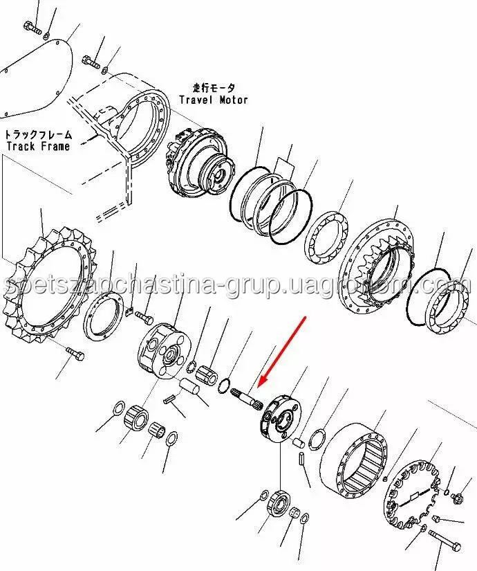 22U-27-21110 Вал гідромотора ходу Komatsu. Купити запчастини для спецтехніки можна у Києві безпосередньо з нашого складу. Всі запчастини в мости та КПП ми поставляємо безпосередньо від виробника. Ремонт мостів та трансмісії проводить наш сервісний центр з ремонту спецтехніки та двигунів (Київ, Україна).22U-27-21110 Вал гідромотора ходу Komatsu PC200