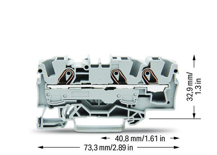 3-дротяні клеми Wago 6,00 mm², 3; підходять для виконань Ex e II; бічна і центральна маркіровка; для DIN- рейки 35 x 15 і 35 x 7,5; Push - in CAGE CLAMP®; сірі.