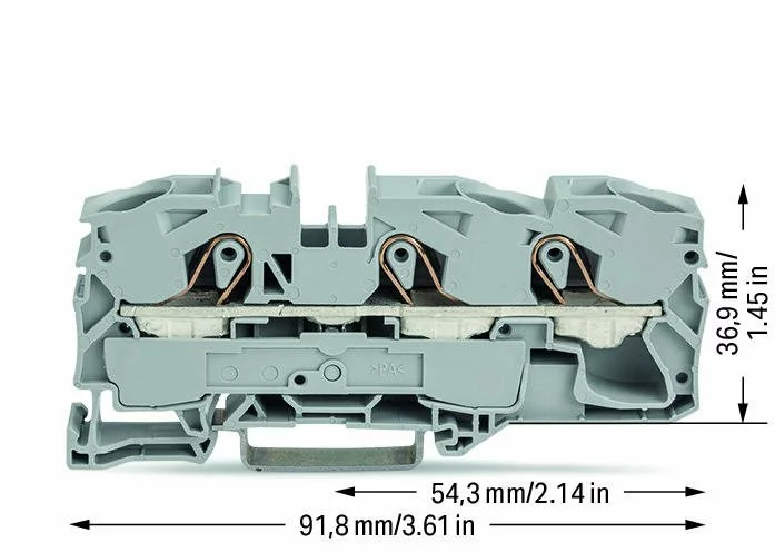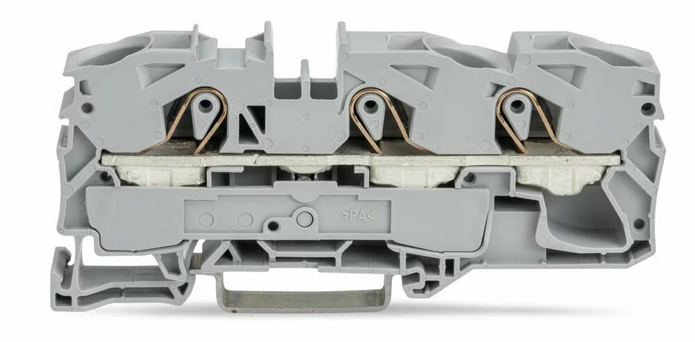 3-провідні прохідні клеми 16 мм² Wago 2016-1301, підходять для виконань Ex e II; бічна і центральна маркування; для DIN-рейки 35 x 15 і 35 x 7,5; Push-in CAGE CLAMP®; 16,00 mm²; сірі.