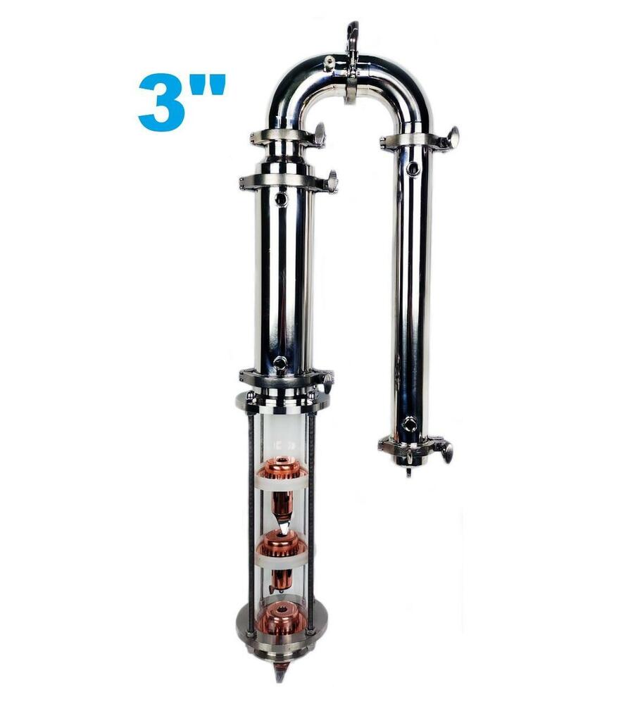 Власне виробництво Комплектація:1) 3" Скляна "Флейта" 1 шт.2) 3" Дефлегматор 1 шт.3) 3"-2" перехідник 1шт 4) 2" Повороти 2 шт. (один з нипелем)5) Термометр 1шт6) 2" Охолоджувач 1 шт.7) 2" "Носик" з трубкою зв'язку з атмосферою 1 шт.8) 2" Хомути з прокладками 4 шт.9) 3" Хомути з прокладками 3шт10) Инструкція11) Сантехкомлект:→ голкові крани пластикові 2шт→ швидкозйоми латунь 2шт→ трійники пластикові 2шт→ шланг поліуретан 4м→ шланг силікон 1м→ фум-стрічка 1шт Характеристики:Висота в сборе 3 рівня: 80смВисота дод. рівня: 10,5смПотужність до 5 кВтВисота дефлегматора: 25смКількість трубок в дефлегматорі: 19штВисота охолоджувача: 40смКількість трубок в охолоджувачі: 9шт Параметри з упаковкою (Д/Ш/В, вага):65/30/20/см., 9,5кг