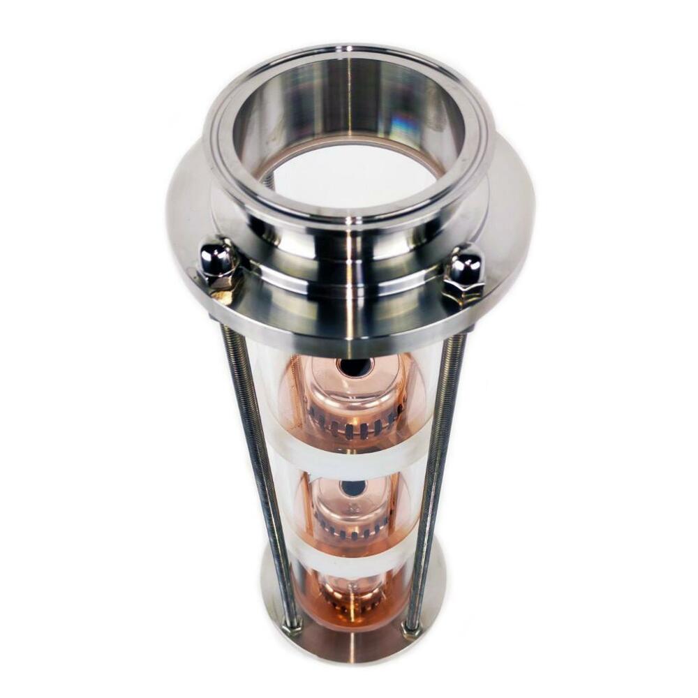 Тарільчата колона Вавілон Кристал під кламп 3" Колпачкова колона зі збільшеними колпачками ProCap, що працюють на потужності до 5 кВтЦіна вказана за базову комплектацію на 3 рівня Ковпачки мають по центру зливний отвір для флегми, що робить їх універсальними. Немає необхідності встановлювати зливний ковпачок. Немає необхідності встановлювати кілька штук дорогих барботажних ковпачків. Один ковпачок ProCap працює на дуже широкому діапазоні до 5000 Вт