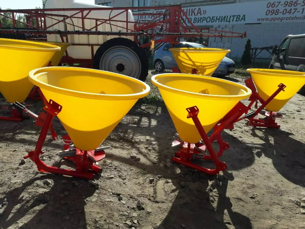 Разбрасыватель минеральных удобрений (Польша) тракторный навесной применяется для поверхностного внесения минеральных удобрений в гранулированном виде, а также для посева зерновых культур и подкормки в период вегитации, что влияет на урожайность. Загрузка машины производится в полевых условиях. Доза внесения удобрений зависит от регулирования механизма управления дозирующими заслонками и рабочей скорости движения