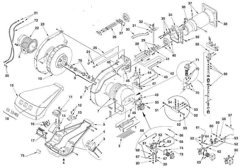 Деталировка запчастей к горелке Riello серии RL 70/100/130