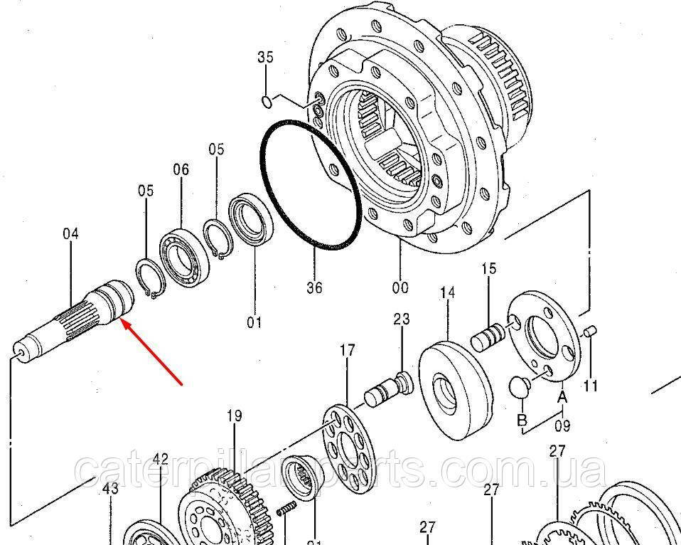 3070443 Вал бортового редуктора Hitachi EX135. Купити запчастини для спецтехніки Hitachi можна у Києві безпосередньо з нашого складу. Всі запчастини до мостів і КПП ми поставляємо від виробника. Ремонт мостів та трансмісії здійснює наш сервісний центр з ремонту спецтехніки та двигунів (Київ, Україна).3070443 Вал бортового редуктора HITACHI EX135