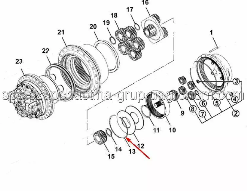 Стопорне кільце в редукторі ходу екскаватора JCB JS220LC
