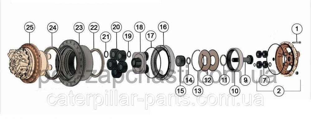 Сателіт в ході редуктор на екскаватор JCB JS220LC (ЖСБ). У нас можна купити усі запчастини для ходового редуктора екскаватора JCB JS220 JC200 у Києвіз складу. Ремонт планетарного редуктора гусеничного екскаватора ми проводимо на нашій техстанції. На всі запчастини та на ремонт гарантія. Швидкий та якісний сервіс допомагає оптимізації грошей та часу, всі роботи виконуються професійними механіками, які знають свою справу. Заміна бортової Джисибі займає 4 години, якщо міняти бортову без гідромотора, потрібно скинути розпресувати гусеницю та перекинути шланги гідромотора. Шестерні такого типу мають зубці, нарізані із зовнішнього боку. При їх використанні відбувається двостороннє обертання ведучої та веденої шестерні, у народі званої сонячної. У цьому зубчастої передачі менше витрат за тертя, отже вище ККД. Застосовуються зубчасті колеса із зовнішнім зачепленням в обмежених за габаритами механізмах, у планетарних передачах, у шестеренних насосах,Модель JCB JS220 (200, 210), JS240, JS260 має два варіанти бортового редуктора, якщо схема не підходить, натисніть тут.