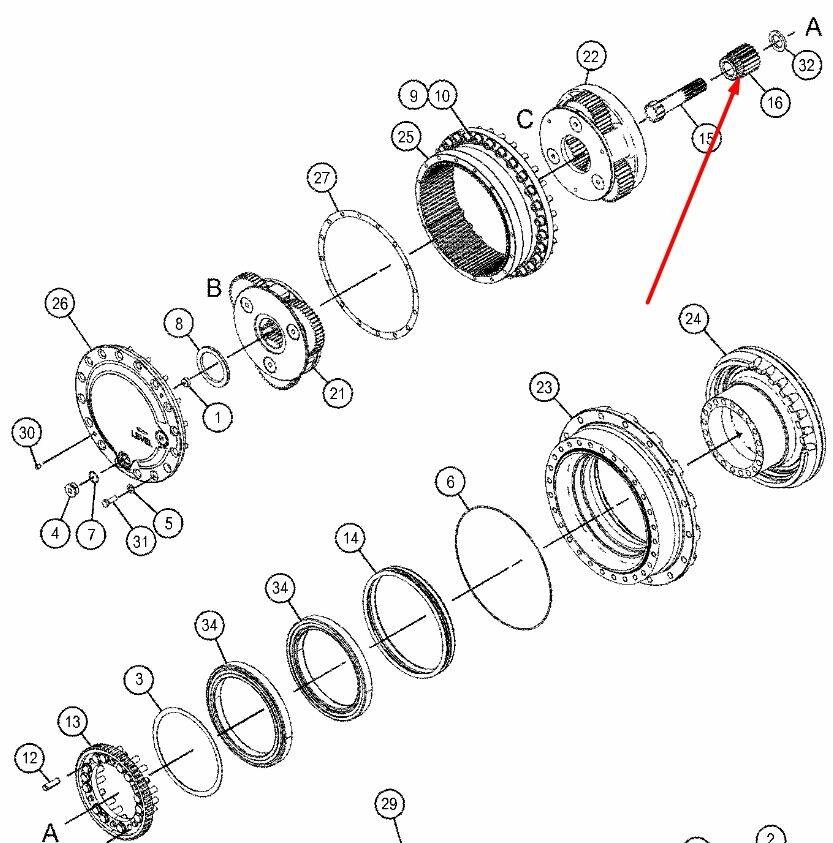 Сонячна шестерня в ходовий редуктор екскаватора Caterpillar 320, 325