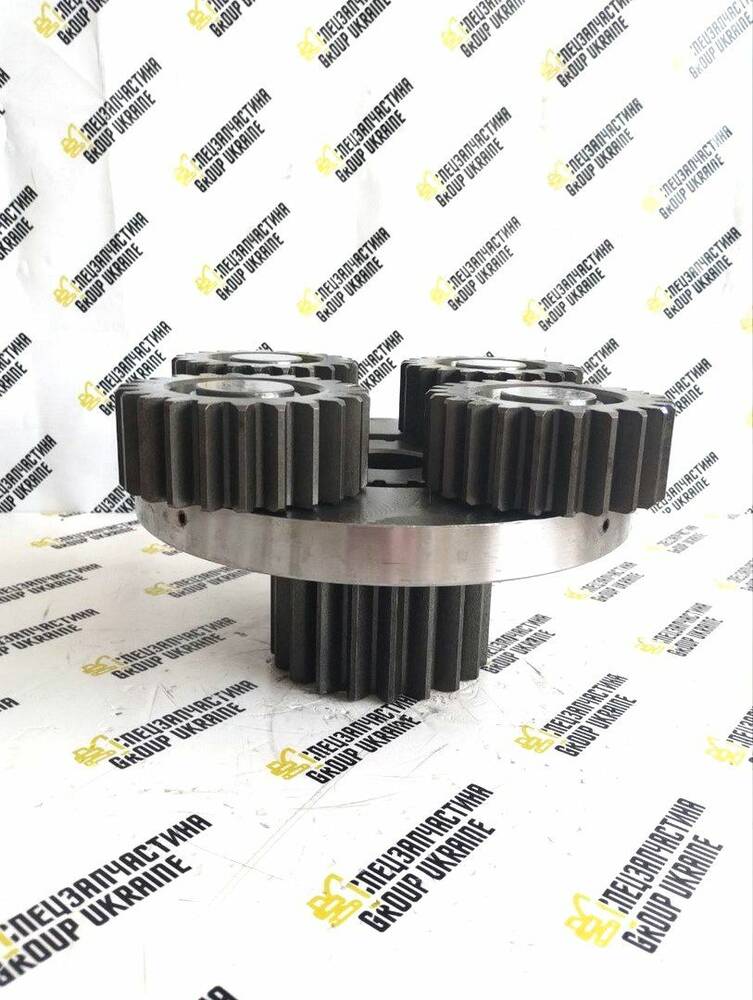 Друга планетарна передача (блок шестерень), встановлюється між валом редуктора та планетарними шестернями на валу двигуна ходу. Використовується на моделях гусеничних екскаваторів JCB: JS330, JS330AUTO. Бортовий редуктор - це агрегат трансмісії, розташований безпосередньо перед провідним колесом. Являє собою шестерну знижувальну передачу, призначену для постійного збільшення крутного моменту, що підводиться до ведучого колеса. Бортовий редуктор має сателіти, що фіксують водилом, яке призначається по відношенню один до одного для подальшого спільного руху. Важливо, щоб один з його елементів був надійно закріплений на корпусі. Бортовий редуктор дозволяє обертатися колесам із різними швидкостями під час маневрування чи руху.336/C7663 Друга планетарна передача в бортовий редуктор ходу на JCB JS330