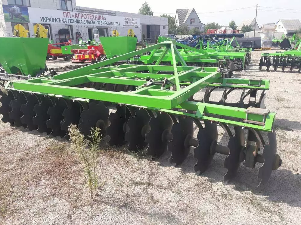 В серии борон 4-х секционных в V системе находятся бороны с шириной захвата от 2.7 до 3.15 м. Каждая машина оснащена креплением позволяющим агрегатировать ее с легким струнным или тяжелым трубчатым катком. Установка угла атаки (поворота) дисков в диапазоне от 7° до 22° позволяет получить нужное качество работы в зависимости от меняющихся условий и рода грунтов. Диск бороны диаметром 510 мм Для повышения безопасности обслуживания бороны во время агрегатированя с трактором применяется сцепная балка.