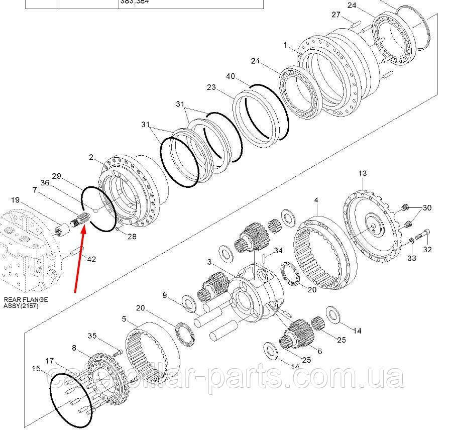 Сонячна шестерня в ходовому редукторі екскаватора Hyundai Robex R130