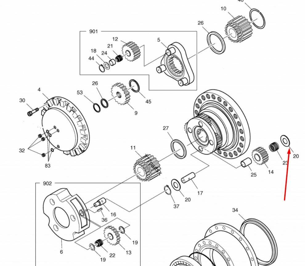 412-00038 Шайба опорна Doosan DX300LC (Дусан). Купити запчастини для спецтехніки Doosan можна у Києві безпосередньо з нашого складу. Всі запчастини до мостів і КПП ми поставляємо від виробника. Ремонт мостів та трансмісії здійснює наш сервісний центр з ремонту спецтехніки та двигунів (Київ, Україна).412-00038 Шайба опорна Doosan DX300LC