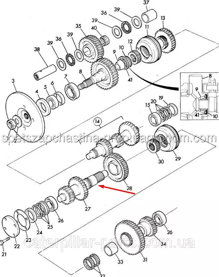 Вал промежуточный КПП JCB 445/70401.Деталь является посредником в передаче крутящего момента с первичного элемента на вторичный. Для этого вал использует набор шестеренок с зубьями разных размеров, которые надежно закреплены на узле. Шестерни имеют косозубую форму, позволяющую снизить износ.