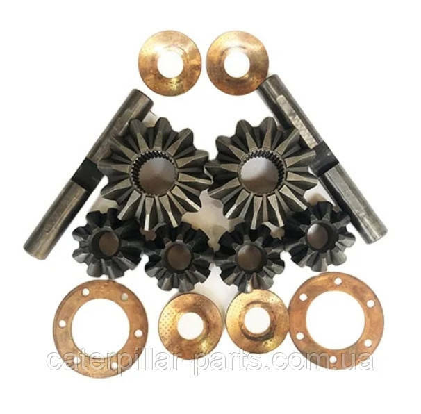 Набор шестерен дифференциала переднего моста экскаватора-погрузчика JCB 3CX. Необходим для обеспечения вращения полуосей с разными угловыми скоростями. Менять при износе шестерней. Они устанавливаются в дифференциал переднего моста, и передают вращение элементам. Без шестерней механизм не будет функционировать, поэтому следите за их состоянием внимательно.