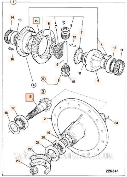 Главная пара в узел дифференциала переднего моста экскаватора-погрузчика JCB 3CX. Представляет механический редуктор состоящий из ведомой и ведущей шестерней с передаточным соотношением 11/33. Предназначен для передачи вращения вала от карданного вала на полуоси под углом и с изменением момента. Менять только обе шестерни сразу при появлении люфта или поломке. При подборе необходима проверка по VIN номеру машины.