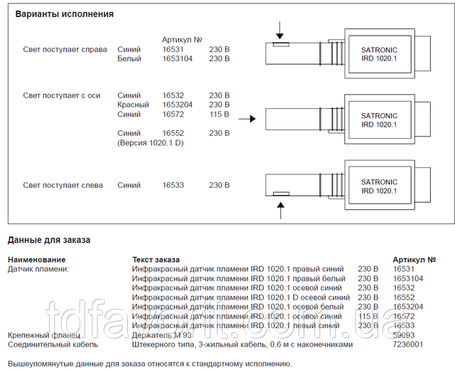 Инфракрасный датчик пламени SATRONIC IRD 1020.1 BLUE (синий - левый) используются с топочными автоматами