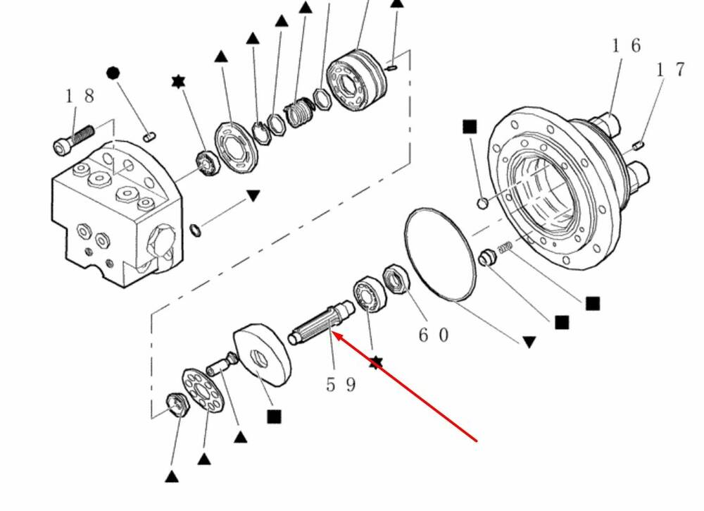 47045996 Вал гідромотора ходу CASE CX16B. Купити запчастини для