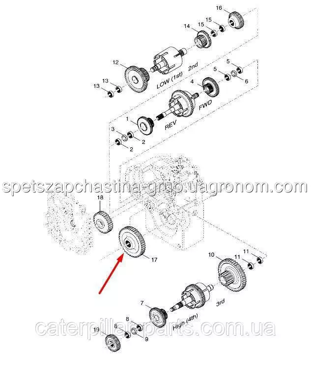 702827 Вал шестерні КПП Manitou. Купити запчастини для спецтехніки можна у Києві безпосередньо з нашого складу. Всі запчастини в мости та КПП ми поставляємо безпосередньо від виробника. Ремонт мостів та трансмісії проводить наш сервісний центр з ремонту спецтехніки та двигунів (Київ, Україна).
