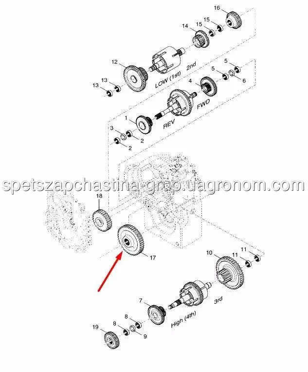 702827 Вал шестерні КПП Manitou. Купити запчастини для спецтехніки можна у Києві безпосередньо з нашого складу. Всі запчастини в мости та КПП ми поставляємо безпосередньо від виробника. Ремонт мостів та трансмісії проводить наш сервісний центр з ремонту спецтехніки та двигунів (Київ, Україна).