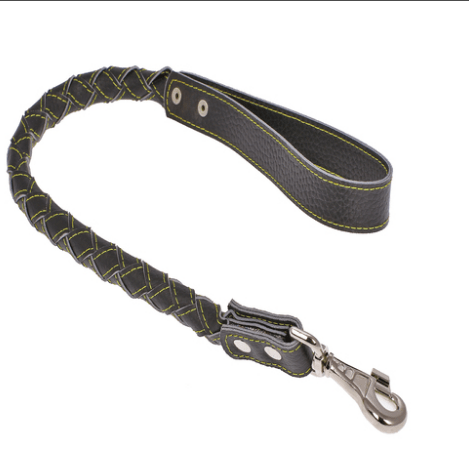 Короткий повідець, складається з однієї ручки (петлі) з потужним карабіном. Цей повідець використовується для ведення великого собаки поруч. Він малофункціональний і стане в нагоді, якщо тільки йдете з собакою в людне місце, де ваш улюбленець має йти поруч.