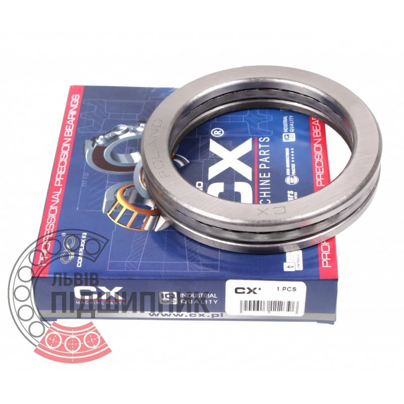 8110 (51110) [CX] Подшипник шариковый упорный Производитель: CX Страна происхождения: Польша Обозначение: 51110 (DIN 711 ISO 104); 8110 (ГОСТ 7872-89 вместо ГОСТ 7872-75). Строение: Упорный шариковый подшипник состоит из двух колец и тел кочення (шариков), соединенных посредством обоймы - сепаратора. Особенности: Подшипники этих типов могут воспринимать только осевые нагрузки, действующие в одном направлении вдоль оси вала.