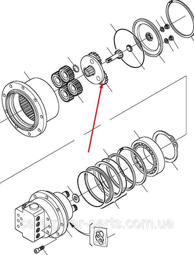 Планетарна передача (водило сателітів, сателіти, сателіт) бортового редуктора (редуктора ходу) KOMATSU PC12R-8