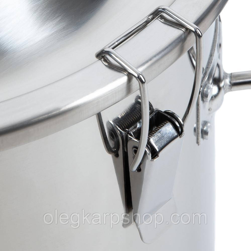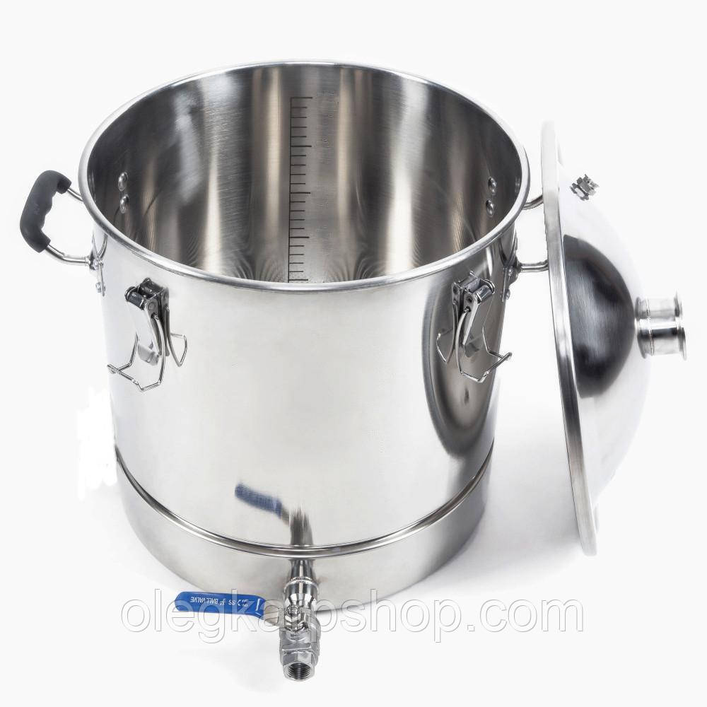 Базова комплектація:Перегінний куб зі сферичною (купольною) кришкою під кламп 2"Встановлені два клампи під тен 2"Термометр електроннийНіпель під термометр, нержавійкаКран зливний нержавыйка, різьба 3/4" внутрішня Додаткові опції:Встановлення 3" кламп на кришку замість 2" Встановлення 4" кламп на кришку замість 2" (+400 грн) Додатково можна придбати:Тен 3 кВт, нержавійка Тен 2,5 кВт, нержавійка (антипригарний)Тен 3,5 кВт, нержавійка (антипригарний)Тен 4,5 кВт, нержавійка (антипригарний)Регулятор потужності з ПЗВ (пристрій захисного виключення)Фальшдно Характеристики:Об'єм ємності: 85л.Розміри (діаметр/висота з клампом): 450мм/640ммОб'єм кришки: ≈5,5лТовщина стінок 1 ммТовщина дна близько 5 мм. Дно плоске, тришарове, з алюмінієвим прошарком для рівномірного розподілу тепла. Матеріал дна AISI 430 (магнітна харчова нержавійка)Товщина кришки 1,2 мм.Прорезинені РучкиМуфта під кран з зовнішньою різьбою 3/4". Кран з харчової нержавійки 3/4"Ребро жосткості для встановлення фальш-дна на відстані близько 80 мм. від днаКількість зажимів Параметри з упаковкою (Д/Ш/В, вага):51/51/67 см., 14,5 кг.