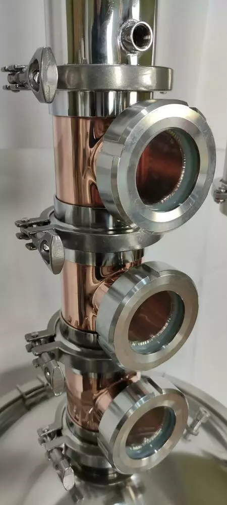 Мідна колпачкова колона на 3"Два клампи під тен по замовчуванню! Базова комплектація:1) Перегінний куб зі зливним краном та ніпелем під термометр (з двома клампами під тен)2) 3" Мідні Преміум рівні 3шт3) 3" Дефлегматор 1шт4) 3"-2" перехідник 1шт5) 2" Відводи 2шт (один з ніпелем)6) Термометр 2шт7) 2" Охолоджувач 1шт8) 2" Прийомний "носик"9) 3" Хомути с прокладками 5шт10) 2" Хомути з прокладками 4шт11) Інструкція12) Сантехкомплект:→ голкові крани пластикові 2шт→ швидкозйоми латунь 2шт→ трійники пластикові 2шт→ шланг поліуретан 4м→ шланг силікон 1м→ фум-стрічка 1шт Додаткові опції:Додатковий рівень (+3950грн) Додатково можна придбати:Тен 3 кВт, нержавійка Тен 2,5 кВт, нержавійка (антипригарний) Тен 3,5 кВт, нержавійка (антипригарний),Тен 4,5 кВт, нержавійка (антипригарний), Регулятор потужності з ПЗВ (пристрій захисного виключення)Фальшдно Нова модель ковпачків ProCap зі збільшеними розмірами дозволяє працювати на потужності 5 кВт Характеристики:Висота рівня 117ммЗагальна висота колони (з трьома рівнями, без куба) 745ммЗагальна висота з кубом 40л/85л 1270/1400ммДіаметр мідної труби 72ммДіаметр "юбки" клампа 3" 91ммПриварний діоптр 2"Дефлегматор 250мм, 19 трубок вн. діаметром 8.5мм (до 5 кВт) 5 перегородокОхолоджувач 400мм 9 трубок Параметри з упаковкою (Д/Ш/В, вага):51/51/67., 24,5кг