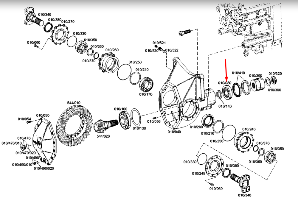 Сонячна шестерня працює в парі з сателлітами, встановленими на водило, заміну проводити тільки при дефектах візуального огляду. Затягування шарнірних гвинтів проводити спец. Ключем при дотриманні моменту затягування 25 кНм. Звільнити затяте кільце з паза, провести демонтаж елемента, кільце замінити на нове. Проводьте регулярне обслуговування пневматичної системи, під час роботи утворюється конденсат, який може потрапити в клапани та циліндри перемикання.