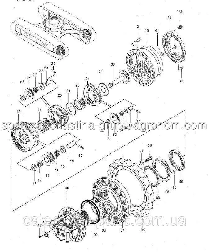 Забезпечує продуктивність трансмісії: зменшує частоту обертання та збільшує крутний момент веденого валу по відношенню до ведучого. Перевага зібраного комплекту - всі деталі ідеально підігнані одна до одної, працюють злагоджено, загальна вартість нижча, ніж при замовленні окремих запчастин.9155253 Редуктор ходу у зборі Hitachi EX200-5