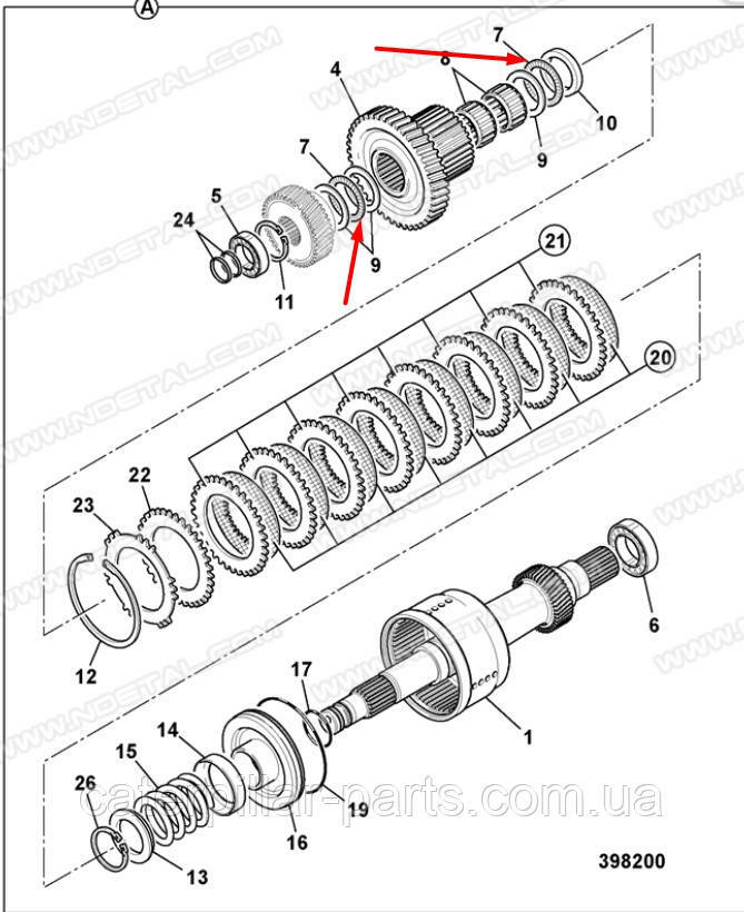 Игольчатый подшипник выходного вала механической КПП для экскаватора-погрузчика. С обоих сторон комплектуется шайбами: 445/19808, 823/10364. Подшипник — сборочный узел, являющийся частью опоры или упора и поддерживающий вал, ось или иную подвижную конструкцию с заданной жёсткостью.Фиксирует положение, обеспечивает вращение, воспринимает и передаёт нагрузку от подвижного узла на другие части конструкции.Основное назначение подшипников - предотвращение прямого контакта металла с металлом между двумя элементами, находящимися в относительном движении.Это предотвращает трение, тепловыделение и износ деталей.Также снижает потребление энергии и передает нагрузку вращающегося элемента на корпус, ограничивает свободу движения движущихся частей в заранее определенных направлениях.