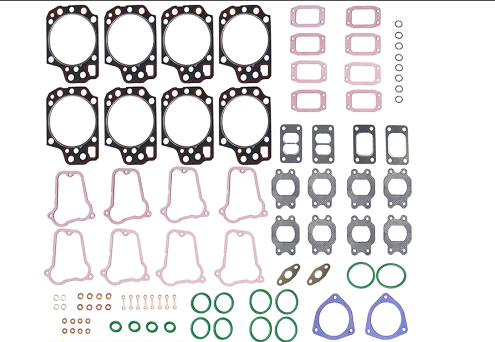 9279919-8 Верхній комплект прокладок для двигуна Liebherr D9408. Включає в себе ущільнення, необхідні при ремонті головки блоку циліндрів (ГБЦ). Усі манжети, ущільнення та прокладки, що відносяться до ГБЦ, входять до такого набору. Для заміни деталі або капітального ремонту двигуна рекомендуємо скористатися повним комплектом.