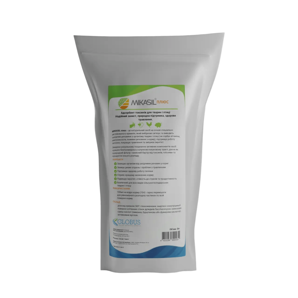 Микасил Плюс — це натуральний засіб на основі спеціально активованого кремнію, який вибірково зв’язує та виводить шкідливі речовини з організму тварин і птиці.