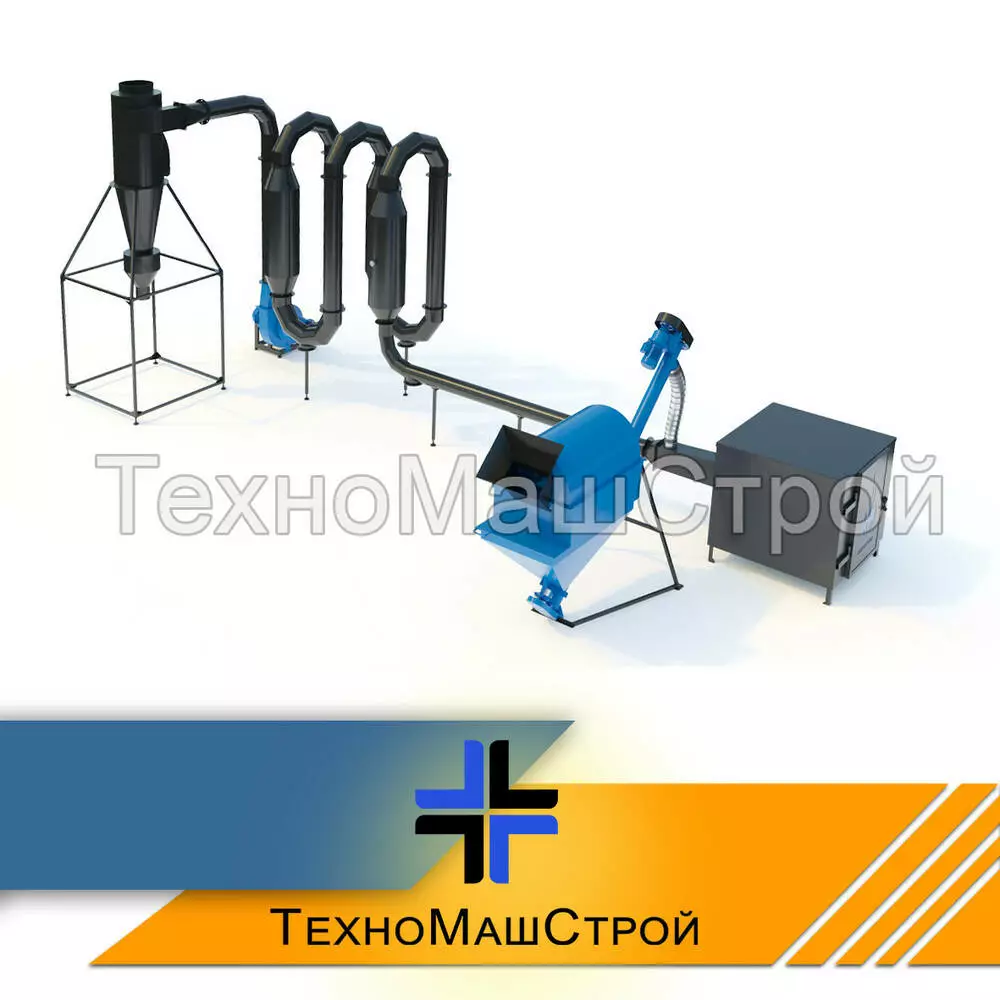 Компанія-виробник «ТехноМашСтрой» пропонує Вашій увазі сучасний аеродинамічний сушильний комплекс СА-400, за допомогою якого, обладнання для виробництва пелет стане продуктивнішим в рази. Кожен бажаючий підприємець зможе виробляти паливні пелети і брикети для котлів, камінів, печей.