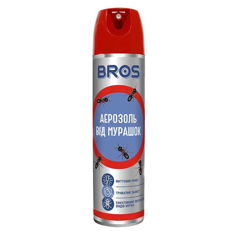Аерозоль проти мурах BROS — використовується для знищення всіх видів мурах у житлових і нежитлових приміщеннях.