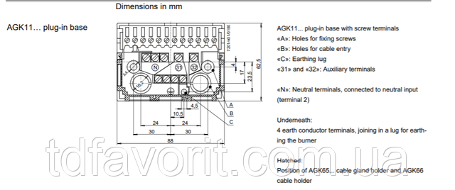 AGK11 - КОШИК ПІДКЛЮЧЕННЯ АВТОМАТА ГОРІННЯ, AGK ... призначені для використання в наступних типах автоматів горіння: LGA...LGB...LGD1...LOA...LME... LMO ...