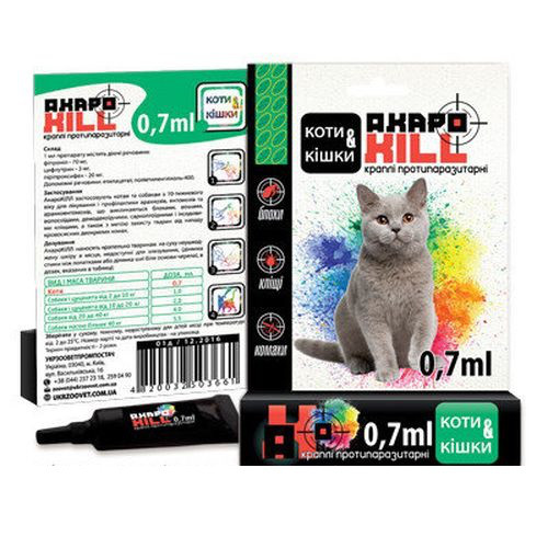 Акарокил краплі від бліх та кліщів для кішок (1 піпетка 0.7 мл)