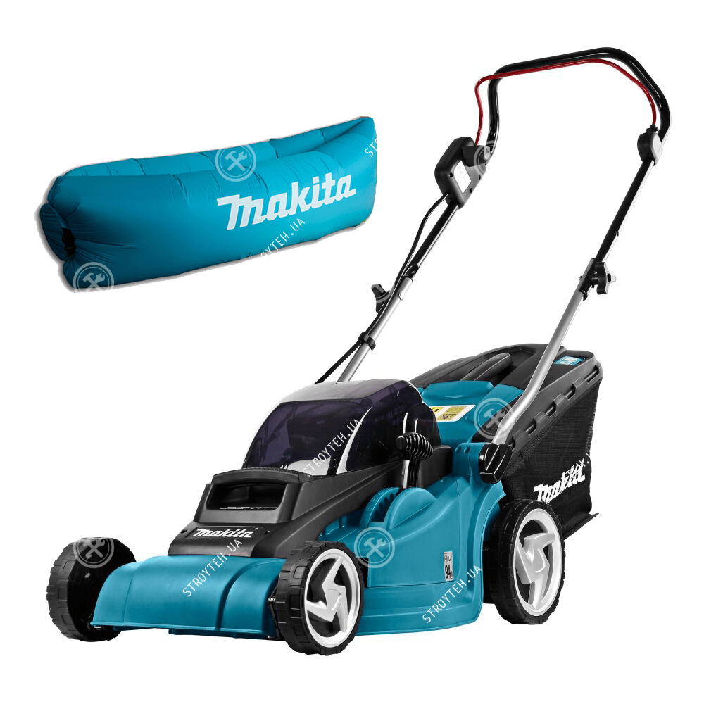 Аккумуляторная газонокосилка DLM380Z + BL1830Bx2, DC18RC + ламзак Makita Газонокосилка аккумуляторная DLM380Z Makita - качественная несамоходная модель. Газонокосилка способна обработать площадь от 270 до 540 м. Высоту стрижки можно регулировать от 25 до 75 мм (6 ступеней). Особенности: Ротационный нож с 2 зубьями обеспечивает ширину реза в 380 мм Удобные ручки для транспортировки Эргономичная ручка с резиновыми вставками обеспечивает удобную работу и высокую эффективность при работе с инструментом Большие ручки регуляторов обеспечивают высокую маневренность инструмента Легкая регулировка глубины реза с 6 положениями, от 20 до 75 мм Складная ручка для удобного хранения? при хранении инструмент можно поставить на заднюю часть Пылезащищенный и водоустойчивый инструмент для эффективной работы