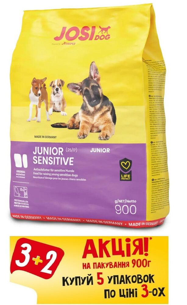 АКЦІЯ! (3 + 2) Сухий корм Josera JosiDog Junior Sensitive для цуценят з чутливим травленням 900 г (5 шт.)