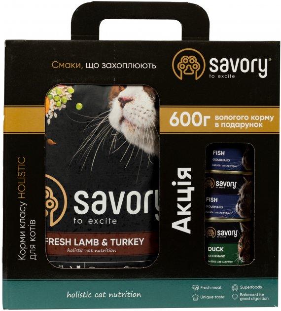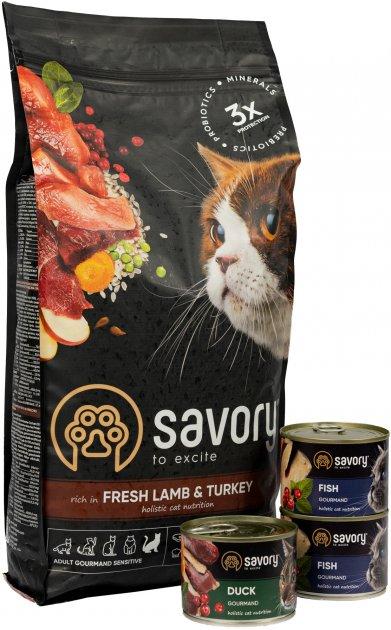 Сухий корм Savory для кішок з чутливим травленням, зі свіжим м'ясом ягняти та індички, 2 кг – 1 шт.