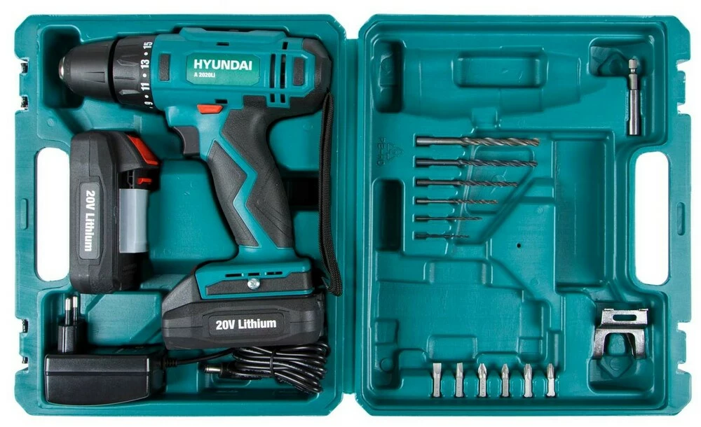 Акумуляторний шуруповерт A 2020LiШуруповерт HYUNDAI A 2020Li - інструмент для свердління отворів в широкому спектрі матеріалів, а також для роботи з кріпленням. З'ємний літій-іонний акумулятор забезпечує незалежність від електромережі і тривалу автономну роботу, а додаткова друга акумуляторна батарея дозволить не зупиняти роботу, поки заряджається перший акумулятор.Ергономічний дизайн розроблений спеціально для максимального комфорту користувача. Завдяки яскравому підсвічуванню робочої зони, використовувати шуруповерт можна навіть в умовах недостатньої освітленості. Сучасний патрон дозволяє проводити заміну насадок дуже просто і не вимагає додаткових зусиль. Якість і надійність складання забезпечать довгий термін експлуатації.Модель призначена для побутового застосування.ОсобливостіШвидкозатискний одномуфтовий патрон дозволяє без додаткових інструментів змінювати оснащення;Можливість регулювати крутний момент (15 + 1 ступенів);Зручна рукоятка з прогумованими вставками для максимального комфорту при роботі.Інструмент має яскраве підсвічування робочої зони. Ця функція корисна при роботі в умовах недостатньої освітленості і в важкодоступних місцях;Перемикання швидкості і реверсу відбувається одним натисканням;Триступенева індикація рівня заряду батареї;Страхувальний ремінь для фіксації шуруповерта на зап'ясті.КомплектаціяДва Li-Ion акумулятора;Зарядний пристрій;Металева скоба - для підвішування на ремінь;Страхувальний ремінь для фіксації шуруповерта на зап'ясті;Пластиковий кейс.