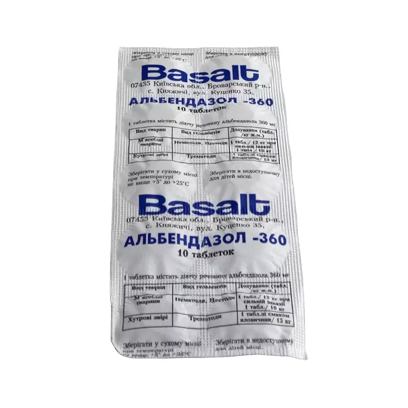 Альбендазол-360 таблетки №10 (антигельмінтний засіб) Базальт
